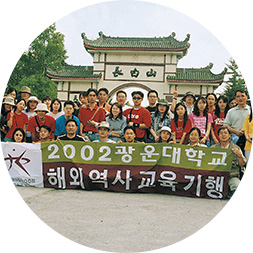 Students’ overseas trip hosted by the university. Students went on a history trip to Baekdu Mountain in 2002.